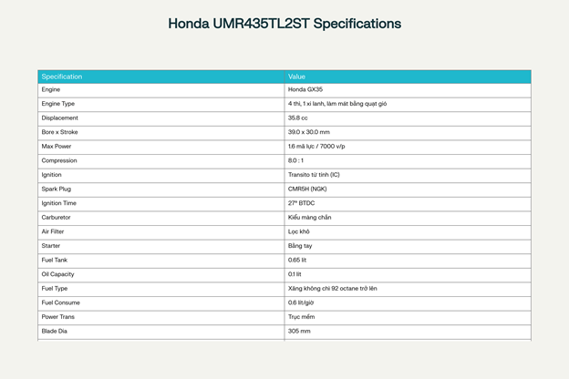 Honda UMR435TL2ST được trang bị động cơ Honda GX35 chính hãng với những thông số ấn tượng: